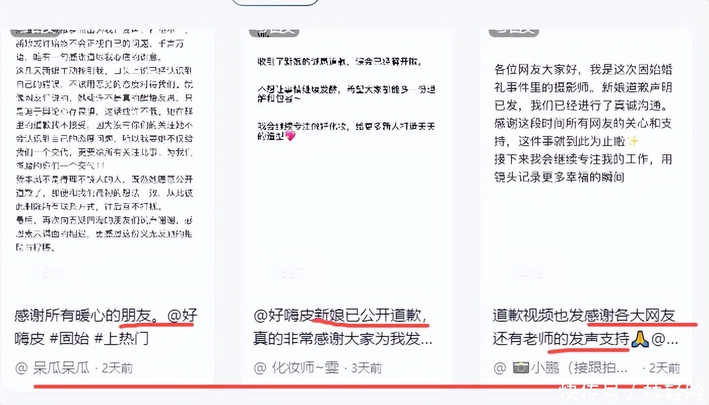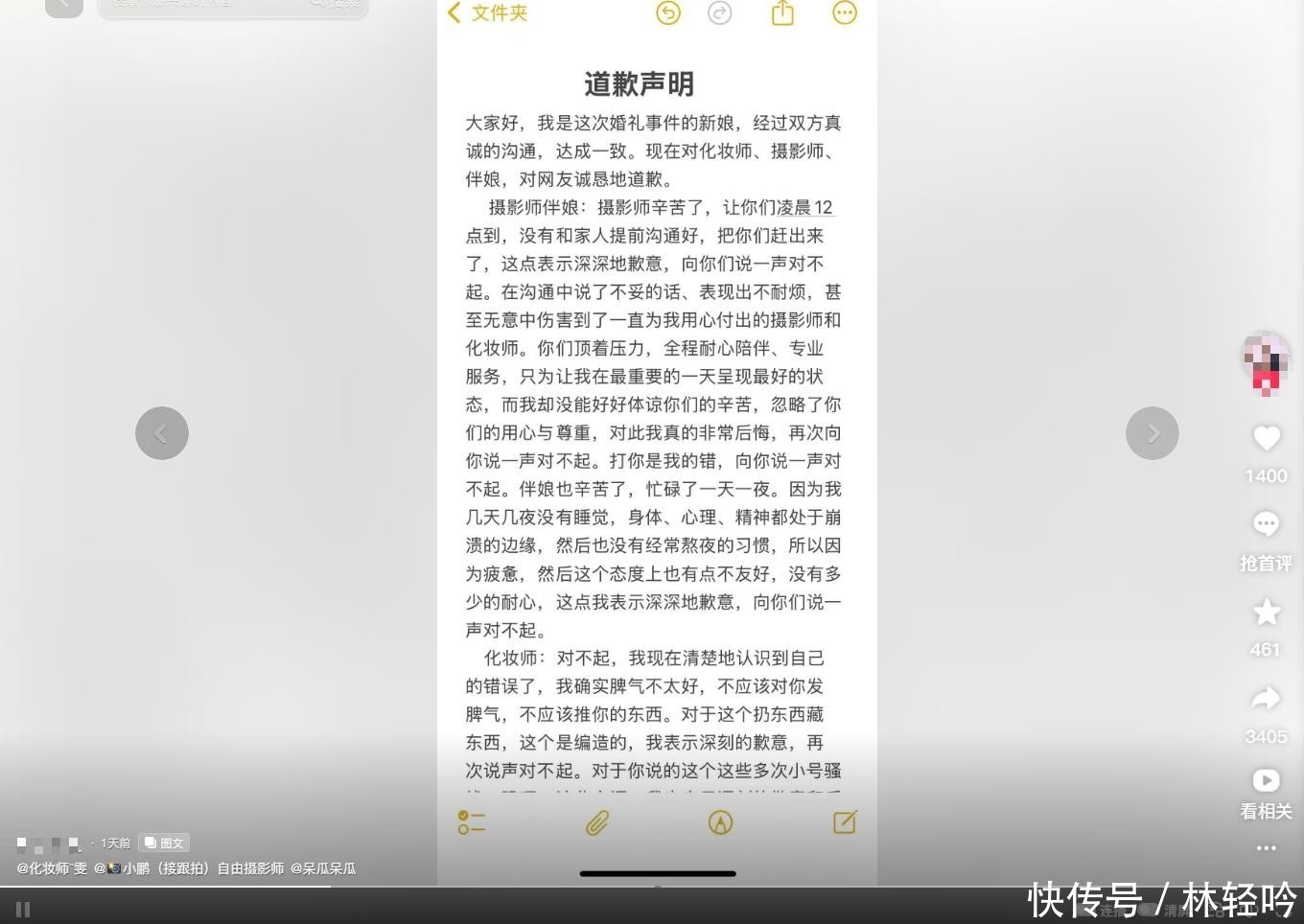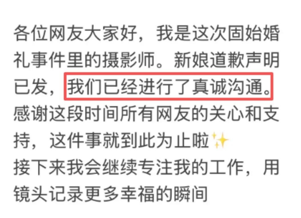 2月4日,包括化妆师、摄影师在内的多位服务人员联合发文,称已收到郑女士私聊致歉,并同步公开其文字版道歉内容,同时@其个人社交账号。