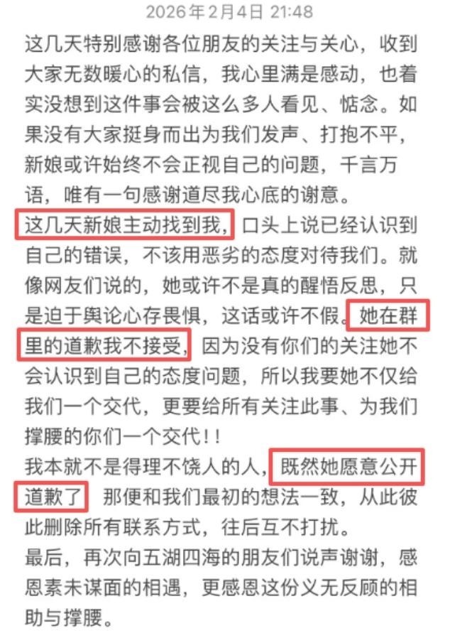 舆论并未因此停歇,相反愈演愈烈。目前该道歉帖已被平台隐藏或主动删除,而新郎昔日同窗再度现身,抛出更具冲击力的信息链。