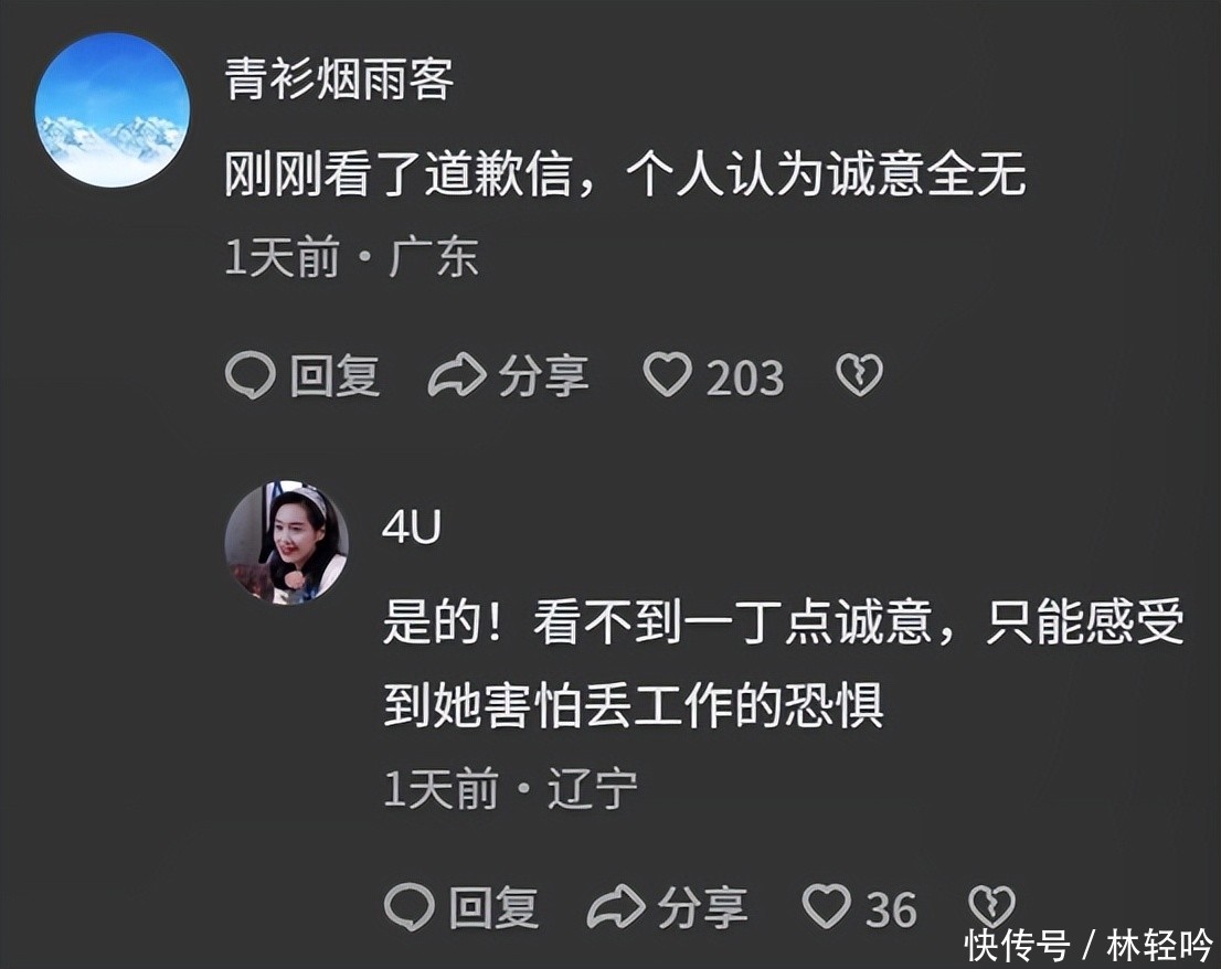 起初,她曾私下联系三位主要发声者建群协商,口头表示歉意,但未获认可。控诉方明确提出:必须面向公众作出正式、完整、可追溯的文字道歉,理由十分清晰——若无舆论监督倒逼,她根本不会正视自身问题。