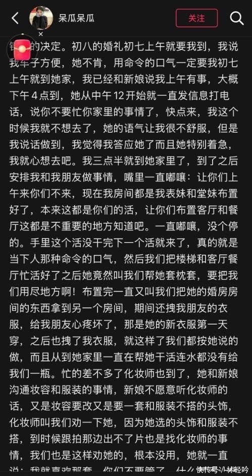 真正让事件性质升级的,是后续摄影师与伴娘接连发布的控诉内容,其中摄影师小鹏的经历尤为令人窒息。