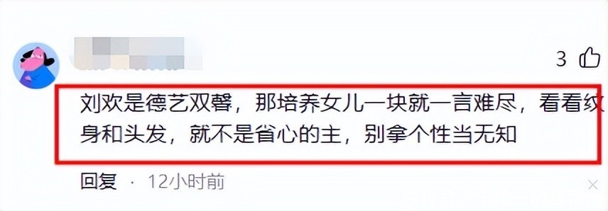又因为刘一丝染红发、有纹身,又有网友骂刘欢卢璐在女儿的教育上很失败。