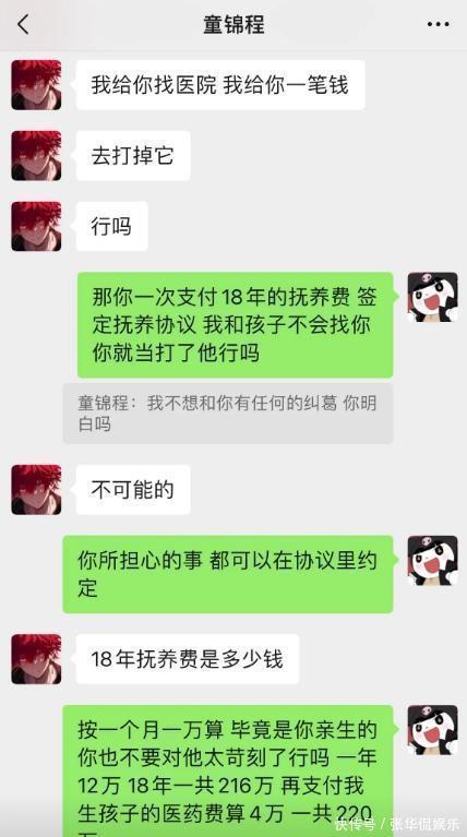 按照一个月一万块钱俩算,18年一共216万,再加上生孩子的医药费,一共220万。她无疑是按照要这个孩子的规划来商量的,但显然,童锦程不想要这个孩子,也不想一次性支付抚养费,还提出要打官司。