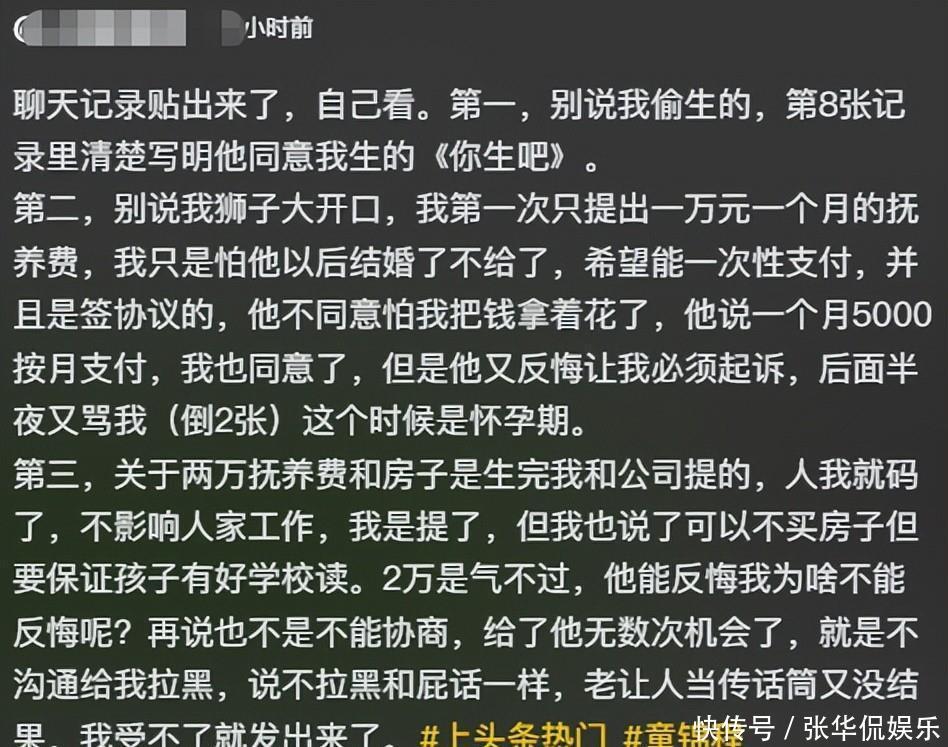 被戏称为“江南第一深情”的网红童锦程,开年第一天被爆出有私生子。因为孩子已经落地,可抚养费的事还没掰扯清楚,两人双双急眼,女方愤然贴出聊天记录,曝光他的行径。可这些聊天看下来,出来的效果却不如她所愿。