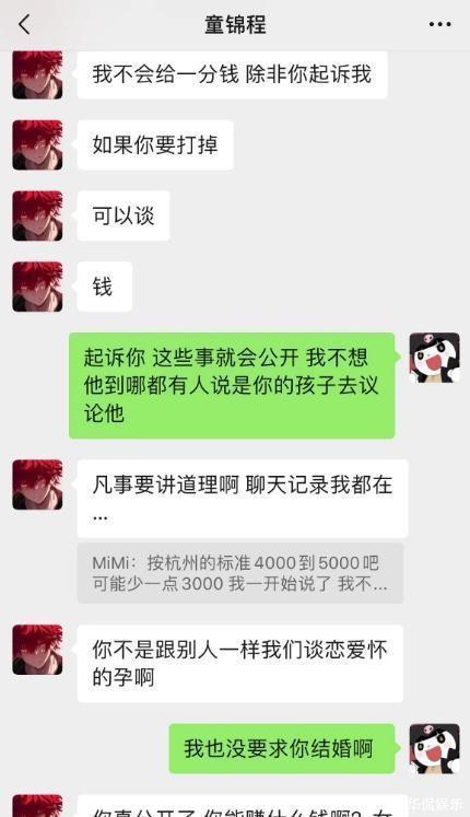 他直接骂了这个女孩,啥也不给了,直接让女孩发疯,发到网上也行,对簿公堂也好,总之他只承担法律规定的钱,其余对方一分都别想要。两人扯了半天,女孩显然是想让童锦程投鼠忌器,但他直接破罐子破摔了。