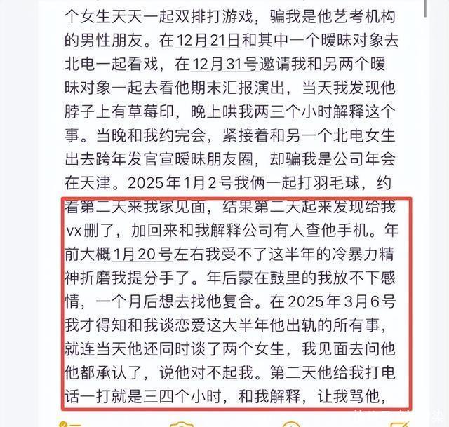 然而在分手之后,李禹熹还是觉得非常难受,熬了一个月就又找到荣梓杉打算跟他复合。 可还没等她找到荣梓杉,她就得知了荣梓杉在和自己恋爱期间,又同时和三个女生谈恋爱的事情。 这事儿一出李禹熹第一时间找上荣梓杉对峙,而在被发现这些丑事之后,荣梓杉立刻就向李禹熹服软,一边道歉一边寻求她的原谅。
