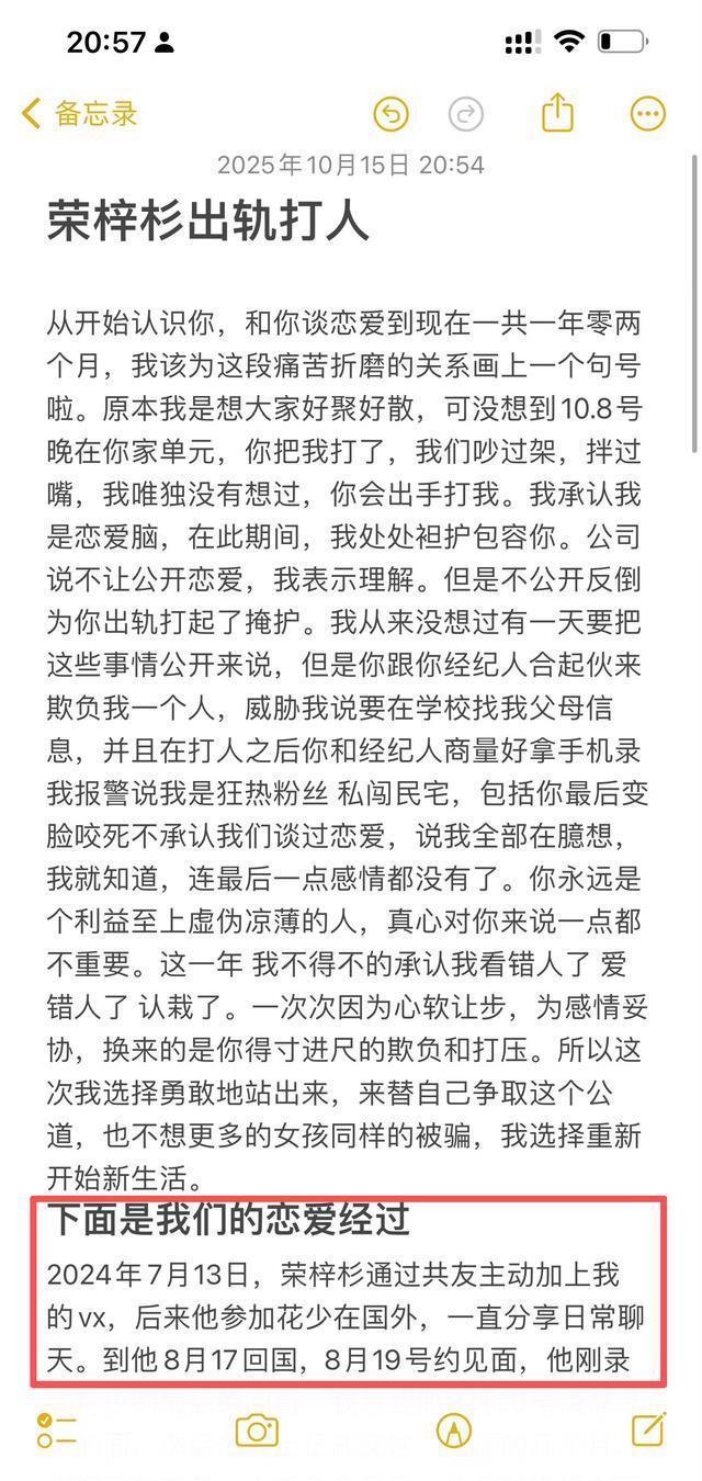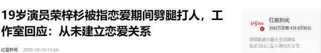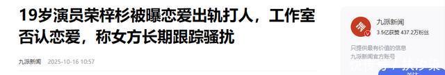 九派新闻《19岁演员荣梓杉被曝恋爱出轨打人,工作室否认恋爱,称女方长期跟踪骚扰》 红星新闻《19岁演员荣梓杉被指恋爱期间劈腿打人,工作室回应:从未建立恋爱关系》